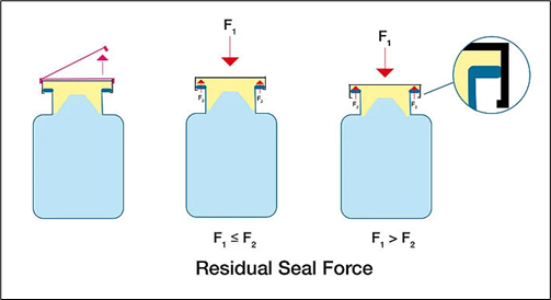 USP1207.3中提出,殘余密封力(RSF)測試法是測量西林瓶軋蓋后壓縮力的一種間接方法,適用于玻璃或塑料西林瓶,其有無破壞性的特點。RSF指的是西林瓶軋蓋后,膠塞對鋁蓋產生的應力。應力越大,說明軋蓋越緊;應力越小,說明軋蓋越松。力值示意圖見圖1。