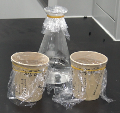 量筒量取V=150mL的食品模擬物,灌裝到一次性杯子里,用兩層保鮮膜密封瓶口,橡皮筋扎緊,放置到預(yù)熱好70°C的烘箱,浸泡2個小時。計算一次性杯子食品模擬物接觸面S。同批次做一個4%乙酸空白溶液和一個20%乙醇溶液。把預(yù)處理后的樣品溶液定量量取100mL,記為V1。分別把溶液加入到AUTO ZF900總遷移量及不揮發(fā)物測定儀里面測試。自動化執(zhí)行空杯恒重、水浴蒸發(fā)、殘渣恒重、溶劑回收流程,灌裝密封后的樣品和空白見圖2。