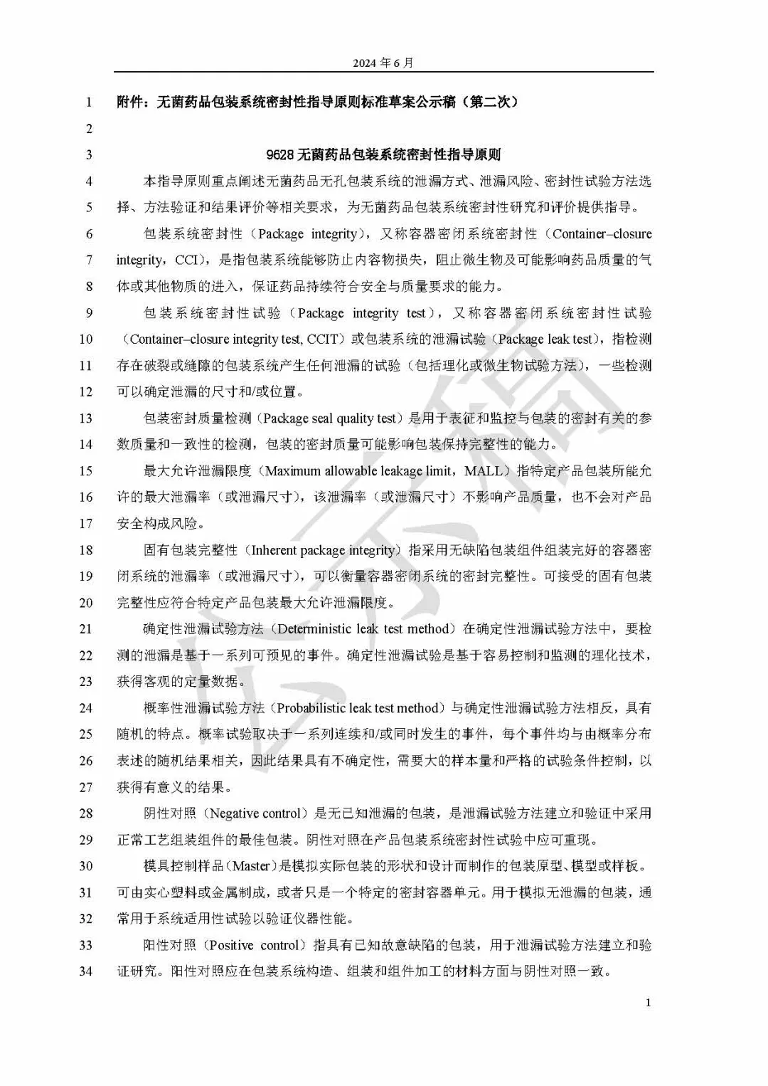 《9628無菌藥品包裝系統(tǒng)密封性指導(dǎo)原則公示稿》按照《“十四五”國(guó)家藥品安全及促進(jìn)高質(zhì)量發(fā)展規(guī)劃》和《中國(guó)藥典》2025年版編制大綱的規(guī)劃制定。藥品包裝系統(tǒng)密封性(包裝材料密封完整性) 保證是作為藥品整個(gè)產(chǎn)品生命周期質(zhì)量安全的關(guān)鍵因素之一。其主要參考了USP1207相關(guān)章節(jié)和國(guó)家藥監(jiān)局藥審中心通告2020年第33號(hào)“化學(xué)藥品注射劑包裝系統(tǒng)密封性研究技術(shù)指南(試行)”等,用于規(guī)范和指導(dǎo)我國(guó)藥包材密封性研究和評(píng)價(jià)工作。第一次公示時(shí)編號(hào)為 9650,本次為第二次公示。