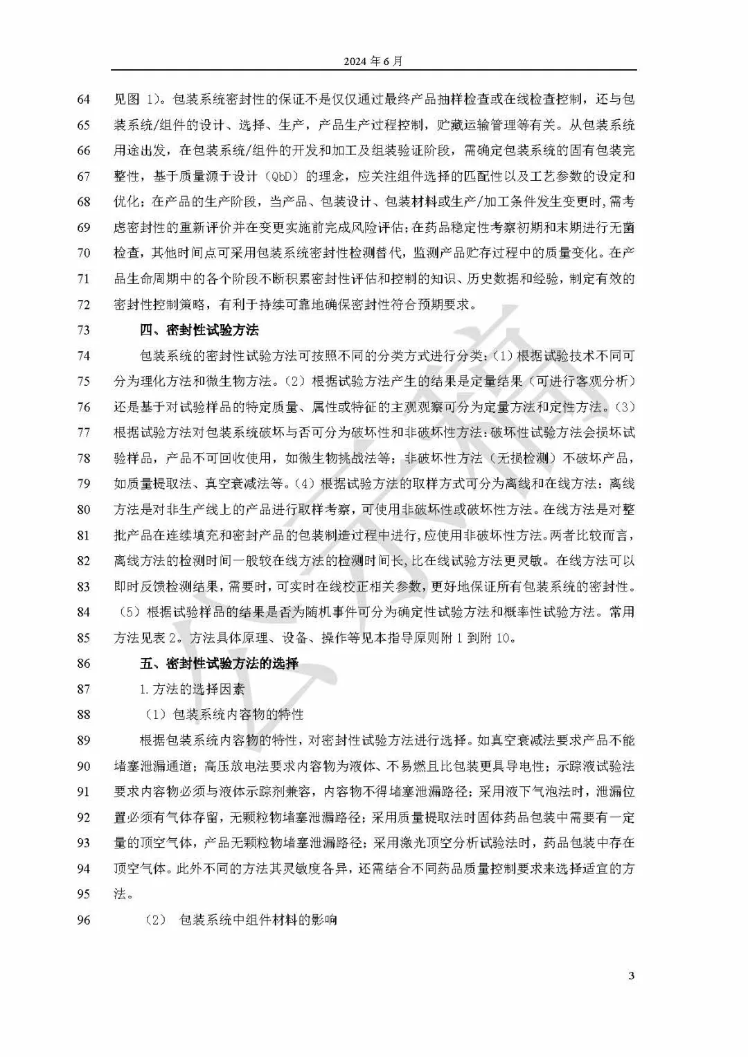 國(guó)家藥典委員會(huì)于2024年6月21日公示了《9628無菌藥品包裝系統(tǒng)密封性指導(dǎo)原則公示稿(第二次)》,公示期為30天。該指導(dǎo)原則重點(diǎn)闡述無菌藥品無孔包裝系統(tǒng)的泄漏方式、泄漏風(fēng)險(xiǎn)、密封性試驗(yàn)方法選擇、方法驗(yàn)證和結(jié)果評(píng)價(jià)等相關(guān)要求,為無菌藥品包裝系統(tǒng)密封性研究和評(píng)價(jià)提供指導(dǎo)。