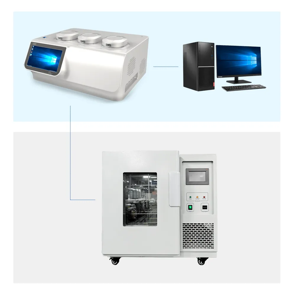 紅外傳感器法:利用紅外傳感器檢測透過材料的水汽濃度。在高溫高濕的測試環(huán)境下,將材料置于傳感器和水汽源之間,傳感器可實時測量透過材料的水汽量,進而快速計算出水汽透過率。如使用廣州標際研發(fā)生產(chǎn) W413 2.0 水蒸氣透過率測定儀搭配 GB-YBT 光伏片材測試平臺,可在模擬高溫高濕的條件下準確測量材料的水汽透過性能。