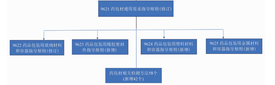 新版《中國藥典》藥包材標準體系,即“1 +4 +58”個標準,可分為兩部分:一是“主體框架”,包括藥包材以及玻璃、橡膠、塑料、金屬四種材質的通用要求。二是“支撐系統”,包括一系列藥包材配套通用檢測方法。