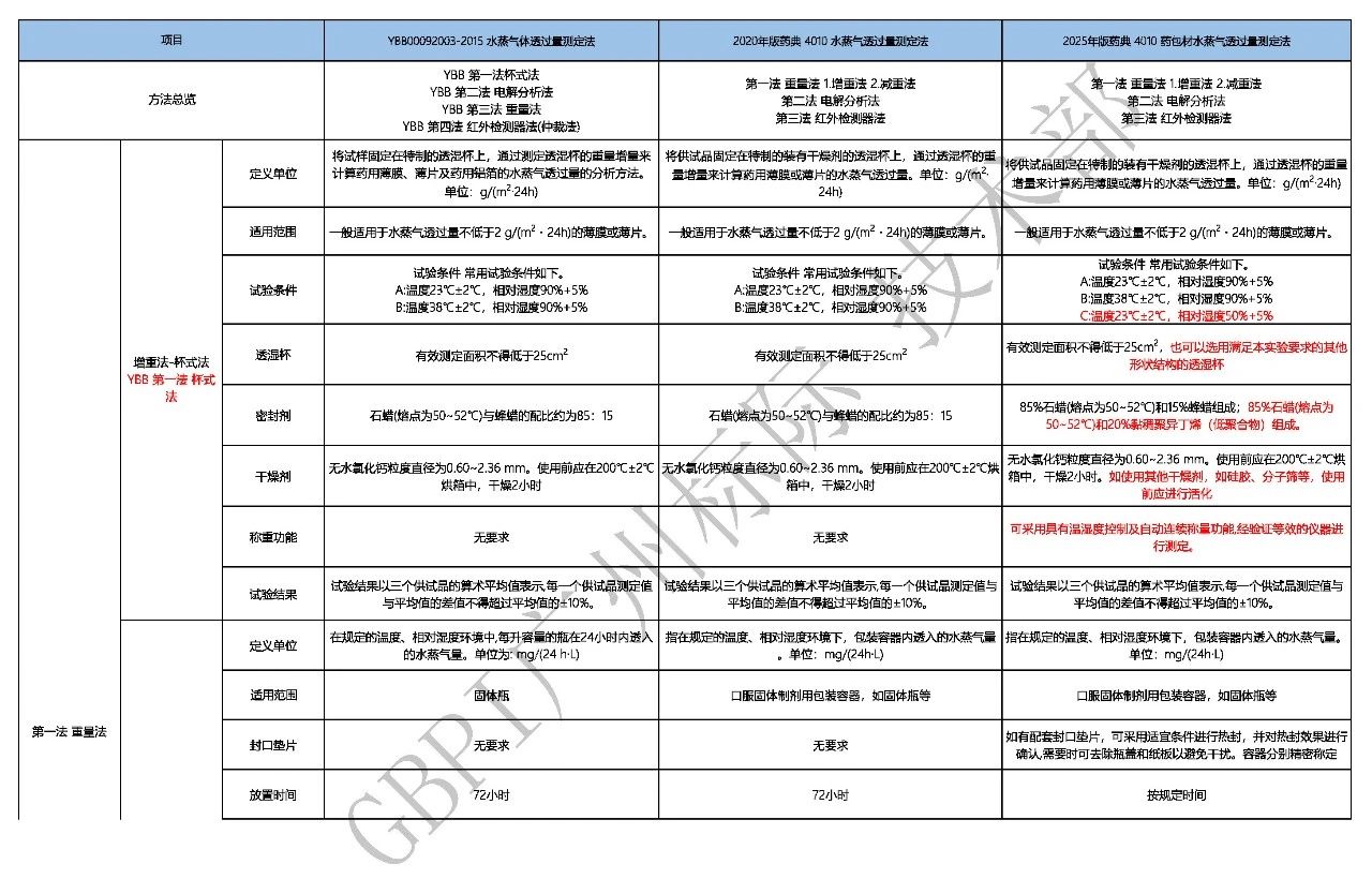 藥包材阻隔性直接影響藥品的質量,是藥包材檢測的重點項目之一。4010水蒸氣透過量測定法早在2020版中國藥典已收錄。現就2025版中國藥典4010 藥包材水蒸氣透過率測定法,2020版中國藥典 4010 水蒸氣透過率測定法以及YBB00092003-2015 水蒸氣體透過量測定法展開對比。為藥包材企業,制藥企業等相關企業藥包材質量控制提供綜合對比方案以及合規應對策略: