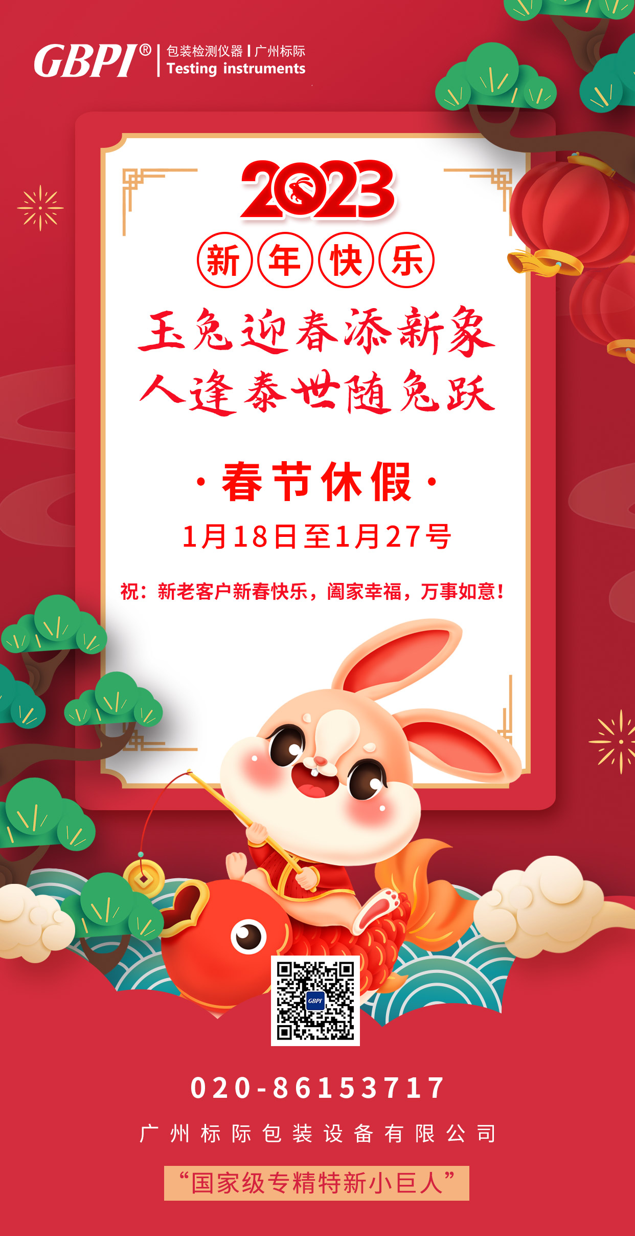國家級專精特新小巨人-廣州標際《2023年春節(jié)放假通知》